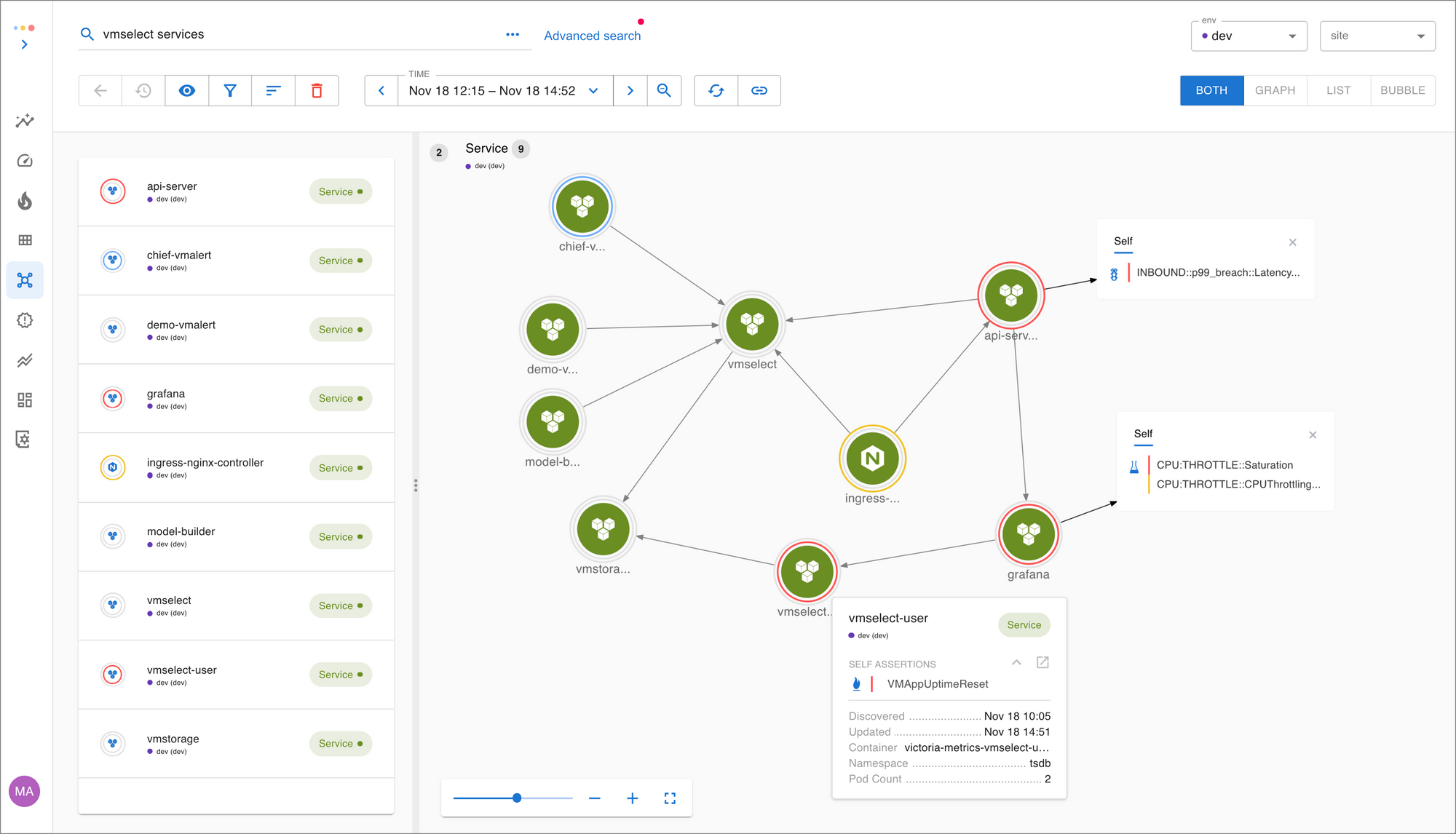 vmselect deployments: the original vmselect that’s responsible for alerts, the vmselect-user which handles ad hoc queries.Asserts will simplify your troubleshooting workflow and remove the everyday toil in building and managing dashboards & alerts. We'd love to help get you up and running. All it takes is a few minutes to find insights!